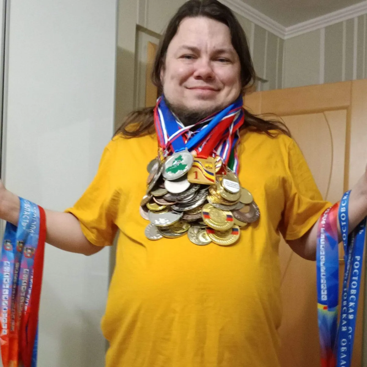 | Медали в количестве 300 штук (золото, бронза, серебро). И нескончаемое количество кубков и грамот. |
